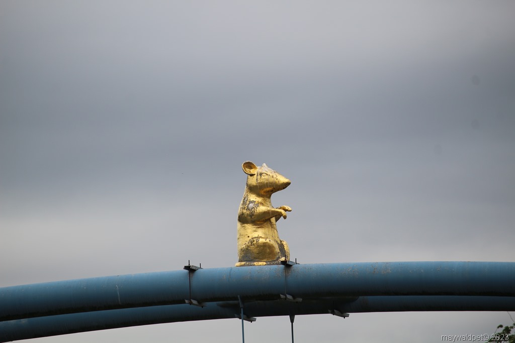 Schließlich erreichten wir die Brücke, und tatsächlich: Auf einem der Brückengeländer saß eine leuchtende goldene Maus. Sie funkelte im letzten Licht der untergehenden Sonne und schien uns anzulächeln. Der Motorradhase und ich waren überwältigt von diesem Anblick.