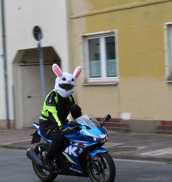 Kaum hatte ich die Stadtgrenzen erreicht, bemerkte ich einen seltsamen Hasen, der auf einem Motorrad neben der Straße entlangfuhr. Ich konnte meinen Augen kaum trauen! Der Hase trug sogar eine kleine Motorradjacke und eine winzige Sonnenbrille. Ich beschloss, ihm zu folgen und herauszufinden, was es mit ihm auf sich hatte.